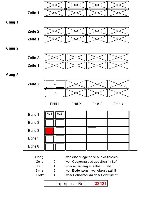 Hier kann z.B. mit einfachen Mitteln schnell und kostengünstig Abhilfe geschaffen werden, wie das Beispiel eines Palettenlagers mit 320 Stellplätzen für Frontstapler zeigt. Die dargestellte Systematik kann selbstverständlich auch auf andere Lagertypen angewandt werden. Dazu gehören z.B. Blocklager, Freilager, Hochregallager, Kommissionierbereiche, Fachbodenregale oder auch Zwischenlager in der Produktion. Abgestimmte Software, auch als Insellösung, kann hier unterstützen.
